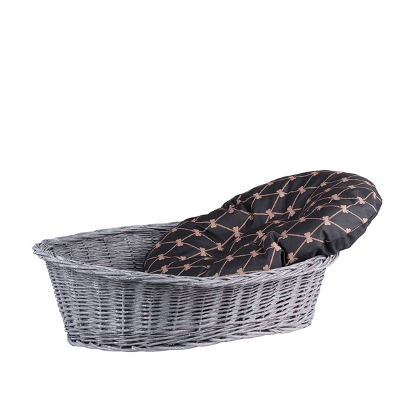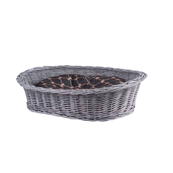Un joli corbeille pour chien ou chat ovale, a bord tresse en osier avec une large ouverture qui permet d'entres et de sortir facilment du panier. Le panier est disponible dans d'autres tailles et ainsi couleurs de coussin.Posez la question sur l'article