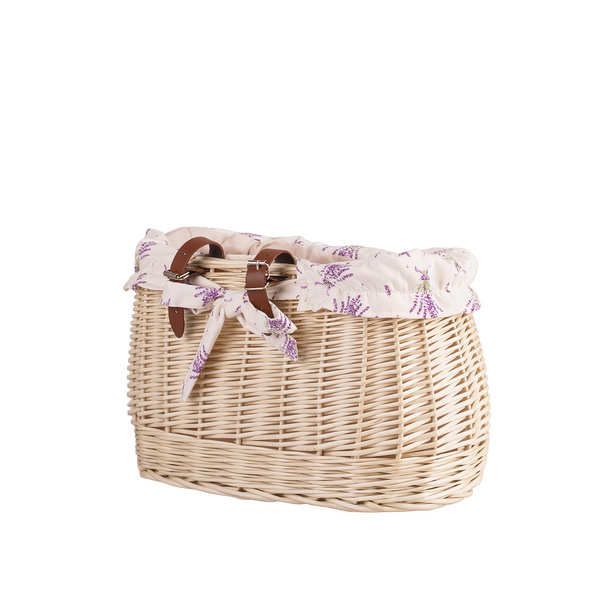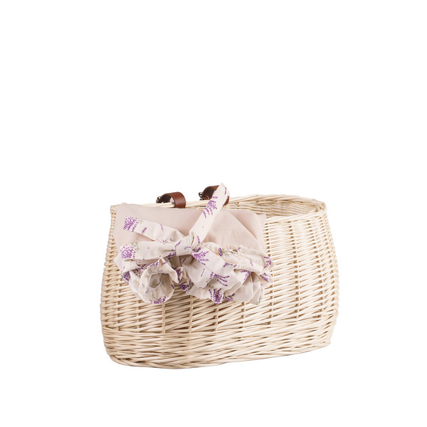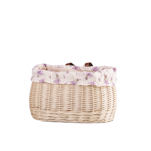 Un joli panier de vélo avec tissu de coton imprimé ( Bouquets de lavande), Idéal pour transporter petites choses Porte-monnaie, lunettes de soleil, Facile a placer et enlever